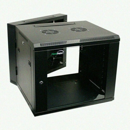 The NavePoint Swing Gate Series, 9U, Wall-Mount Network Cabinet can be used for network closets, retail locations, schoools, IT shops, home users, and any area where space is limited, security is important and routine access to equipment is necessary. This Wall-Mount Network Cabinet has 2 built-in fans to promote airflow to prevent possible overheating of equipment. This Wall-Mount Network Cabinet supports your equipment to a maximum weight of 200 lbs.